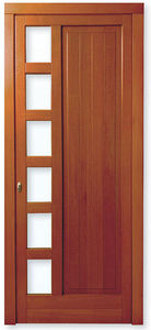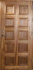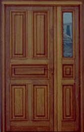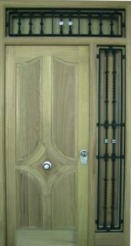 - Puerta fabricada en madera maciza para exterior. Para su mayor resistencia mediambiental, se trata la madera con barniz protección al exterior.